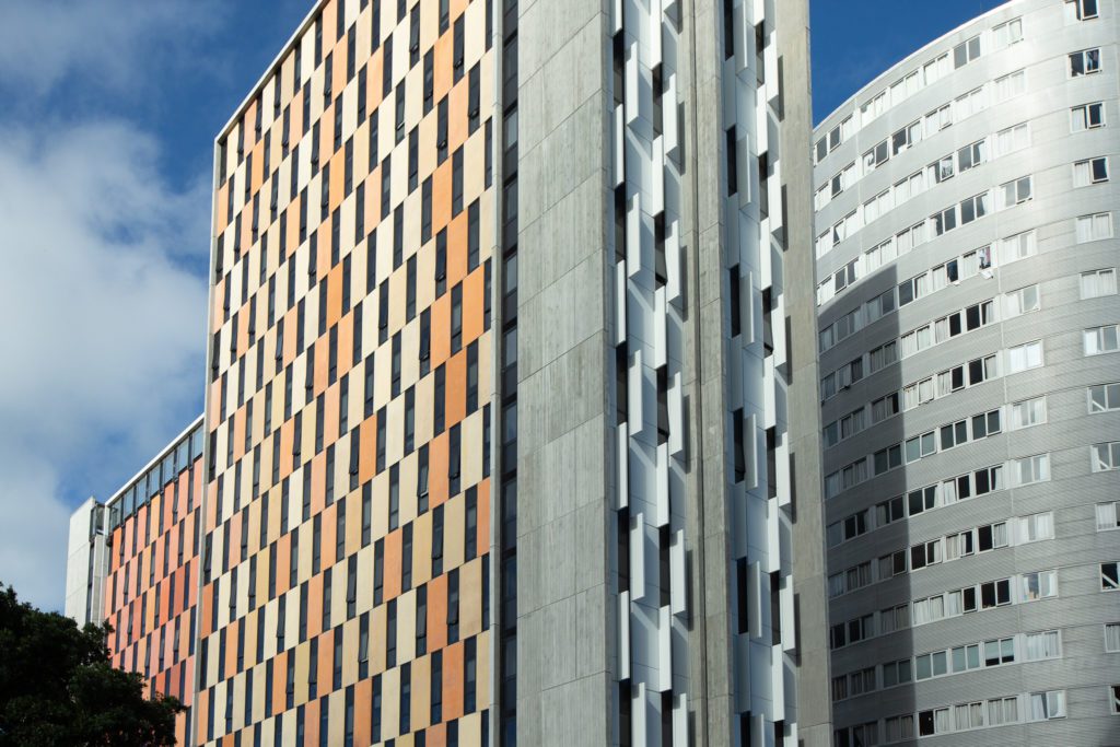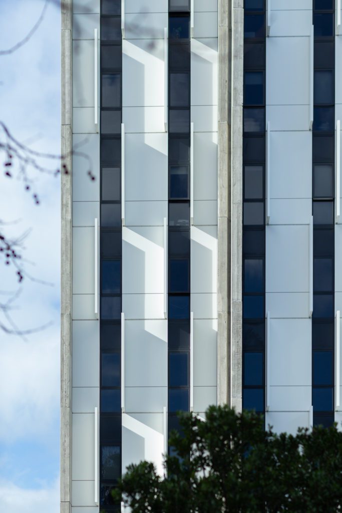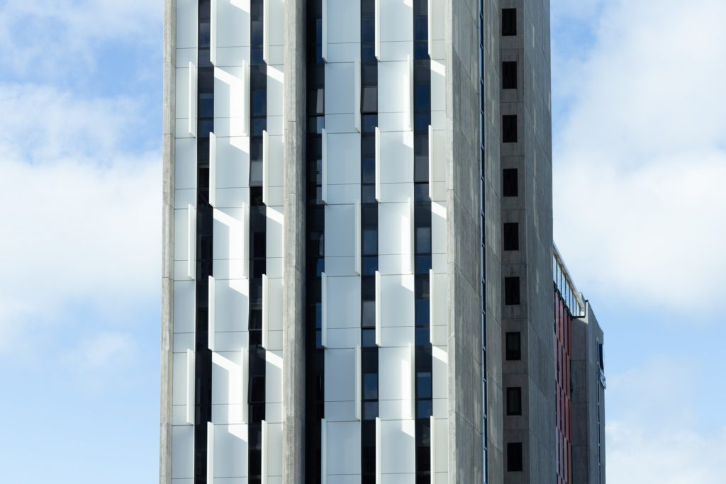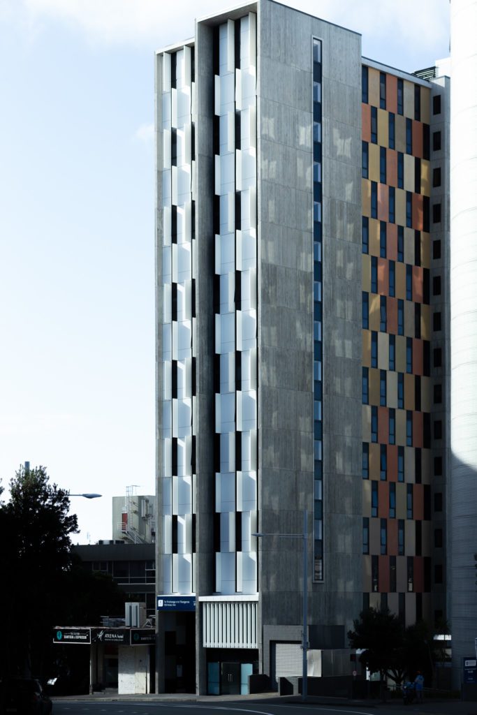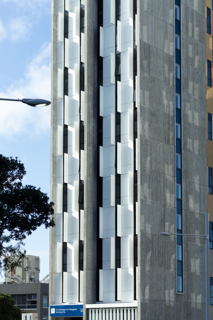 University of Auckland, Student Accommodation, Anzac Ave. ACMF cladding. PRODUCT: Reynodual panels and ACP Fins. NOTE: Reynodual has been superseded with Alucolux.