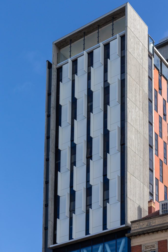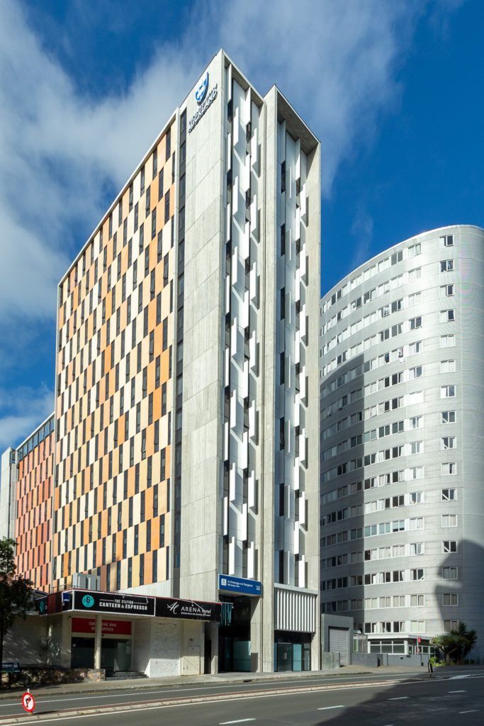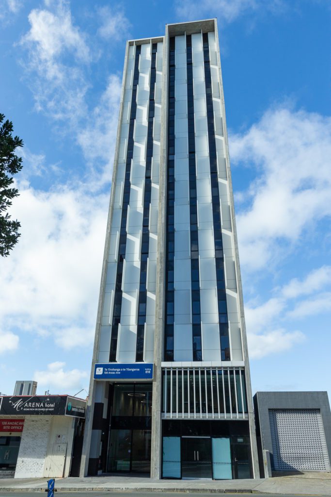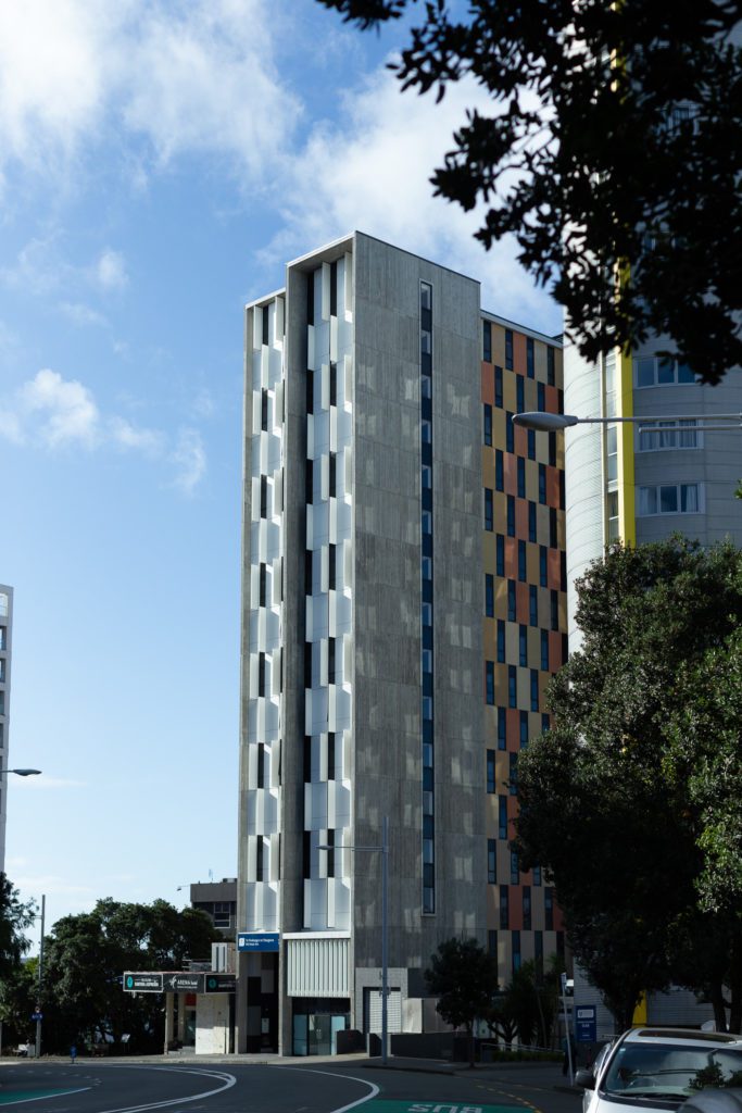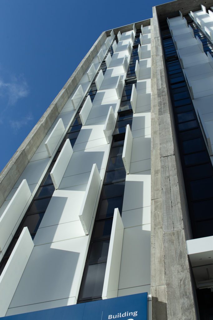 University of Auckland, Student Accommodation, Anzac Ave. ACMF cladding. PRODUCT: Reynodual panels and ACP Fins. NOTE: Reynodual has been superseded with Alucolux.