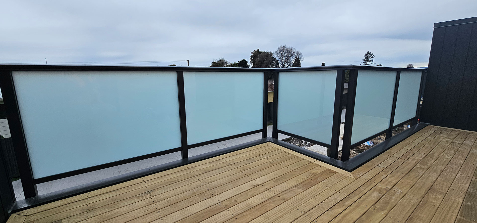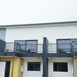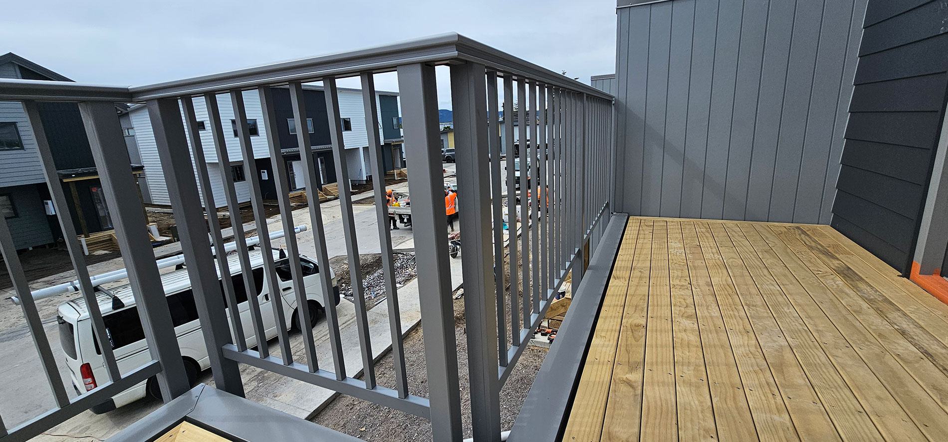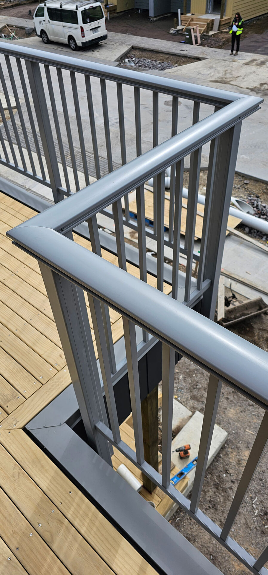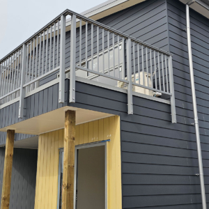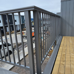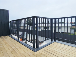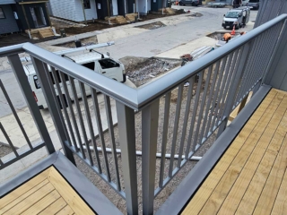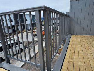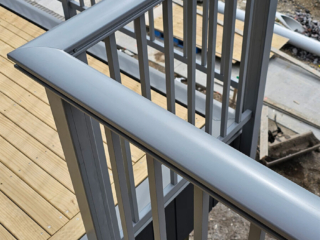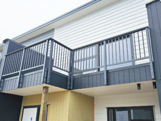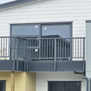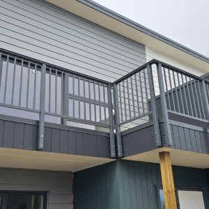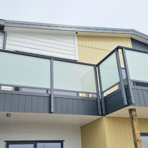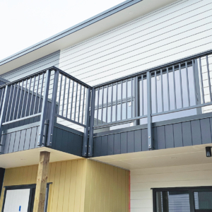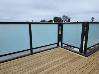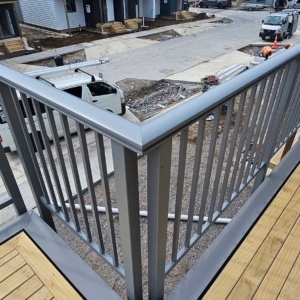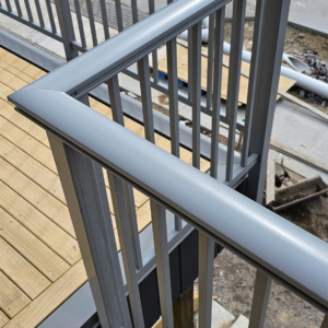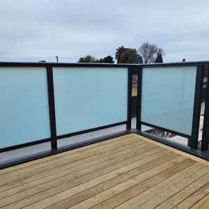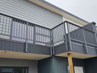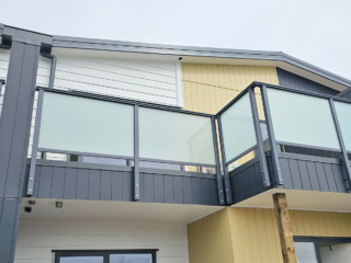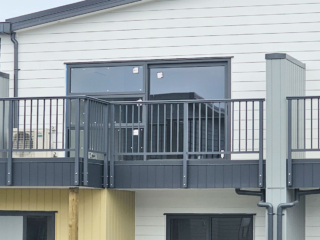 ELEGRA Pioneer – Baluster infill, ELEGRA Aurora – Glass Infill (White translucent was used for privacy) in grey friars and sandstone grey.