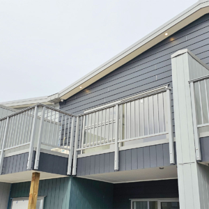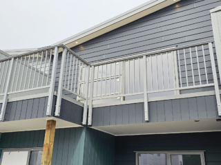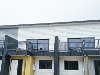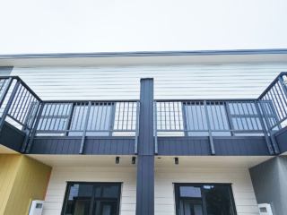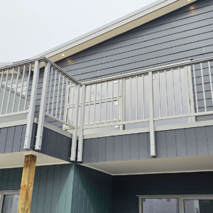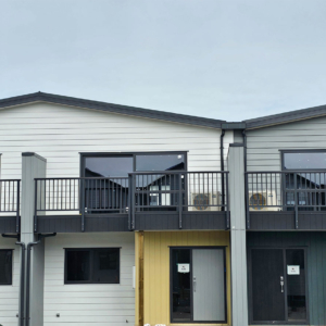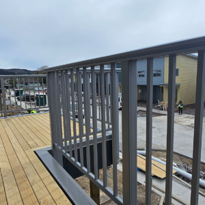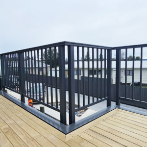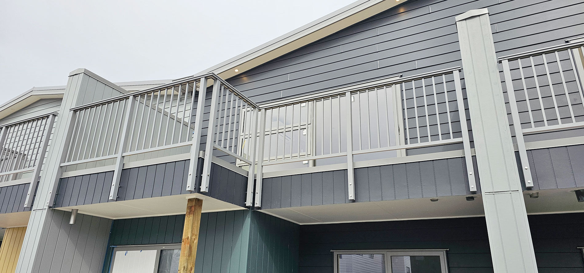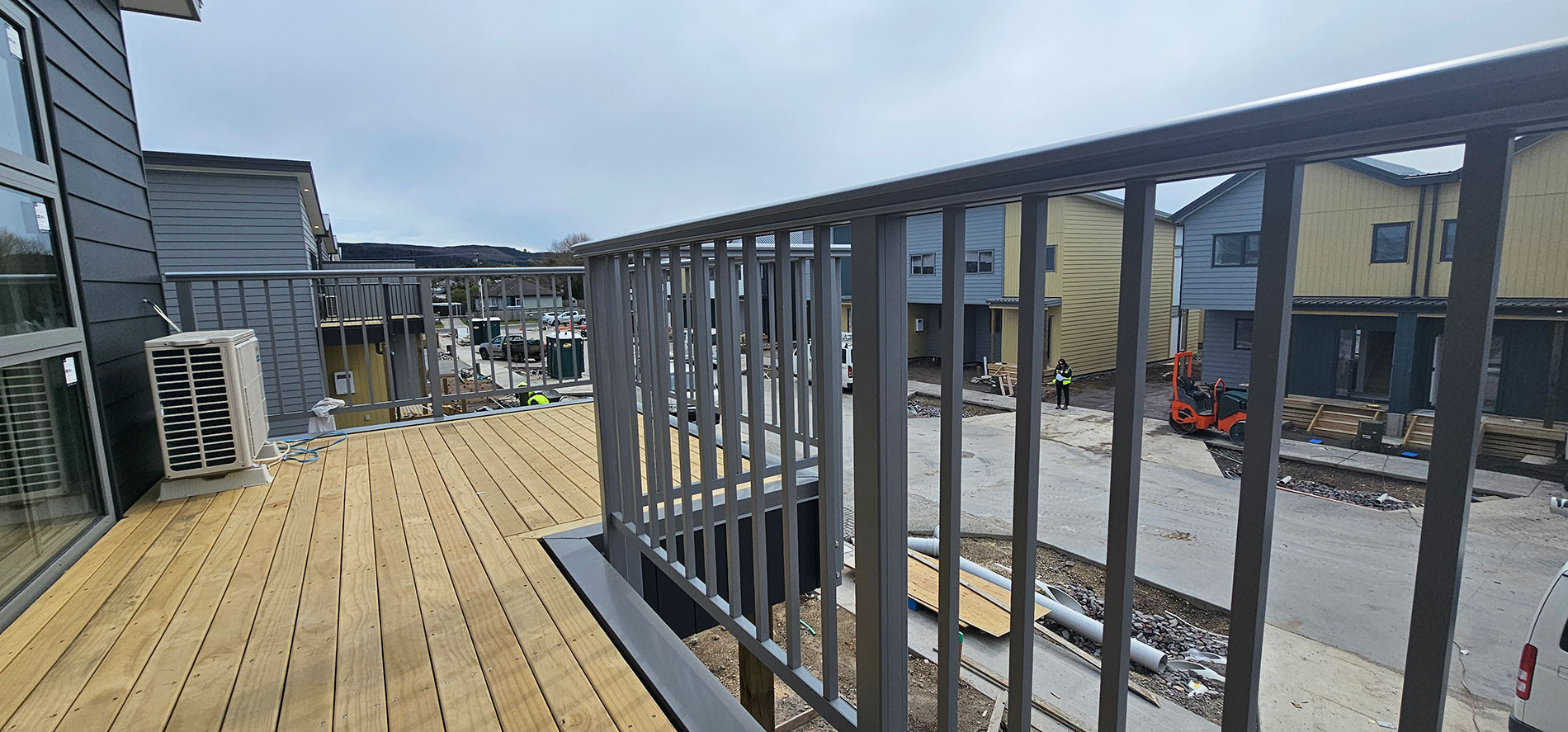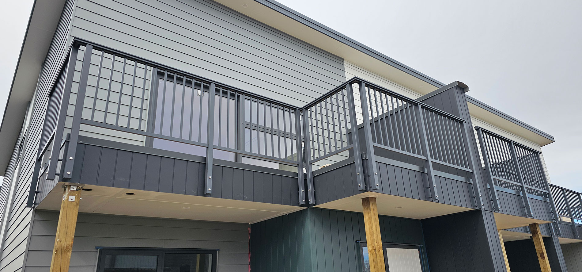 ELEGRA Pioneer – Baluster infill, ELEGRA Aurora – Glass Infill (White translucent was used for privacy) in grey friars and sandstone grey.