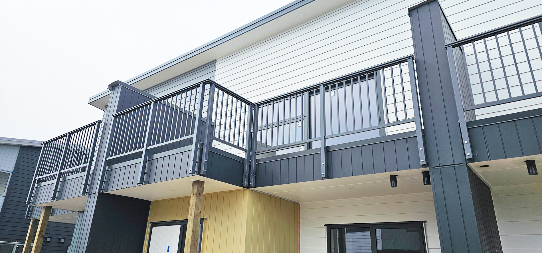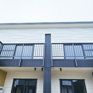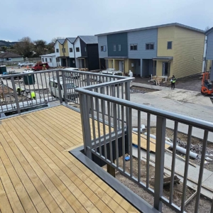 Architect: KPC Architectural Limited | Products Installed: ELEGRA Pioneer – Baluster infill, ELEGRA Aurora – Glass Infill (White translucent was used for privacy) in grey friars and sandstone grey.