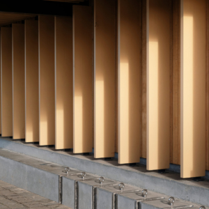 The New World Supermarket in Te Kauwhata featured our custom soffit screens and louvre blades formed from aluminium and powder coated in a timber finish. The 50×50 batten screens and 300×50 louvre blades add warmth, depth and durability to the façade while maintaining a low-maintenance exterior solution. Photography credit: Wingates Architects