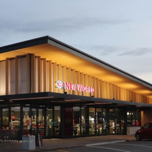The New World Supermarket in Te Kauwhata featured our custom soffit screens and louvre blades formed from aluminium and powder coated in a timber finish. The 50×50 batten screens and 300×50 louvre blades add warmth, depth and durability to the façade while maintaining a low-maintenance exterior solution.
