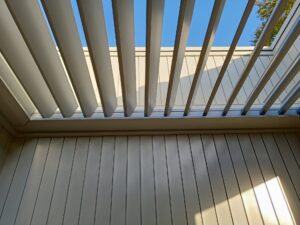 Our louvre systems are adjustable ventilation systems designed to control airflow and light intake in buildings. Made from durable aluminum, these louvres can be operated manually or automatically to open and close, allowing for precise control over interior climate and energy efficiency. Ideal for both residential and commercial applications, operable louvres enhance air circulation, reduce heat buildup, and provide natural light while maintaining privacy and security. They are commonly used to open up outdoor common areas allowing all-year-round outdoor enjoyment!Our operable pergolas can be connected to the Building Management System and are powered by world leading LINAK® electric actuators combined with rain sensors and manual switching.