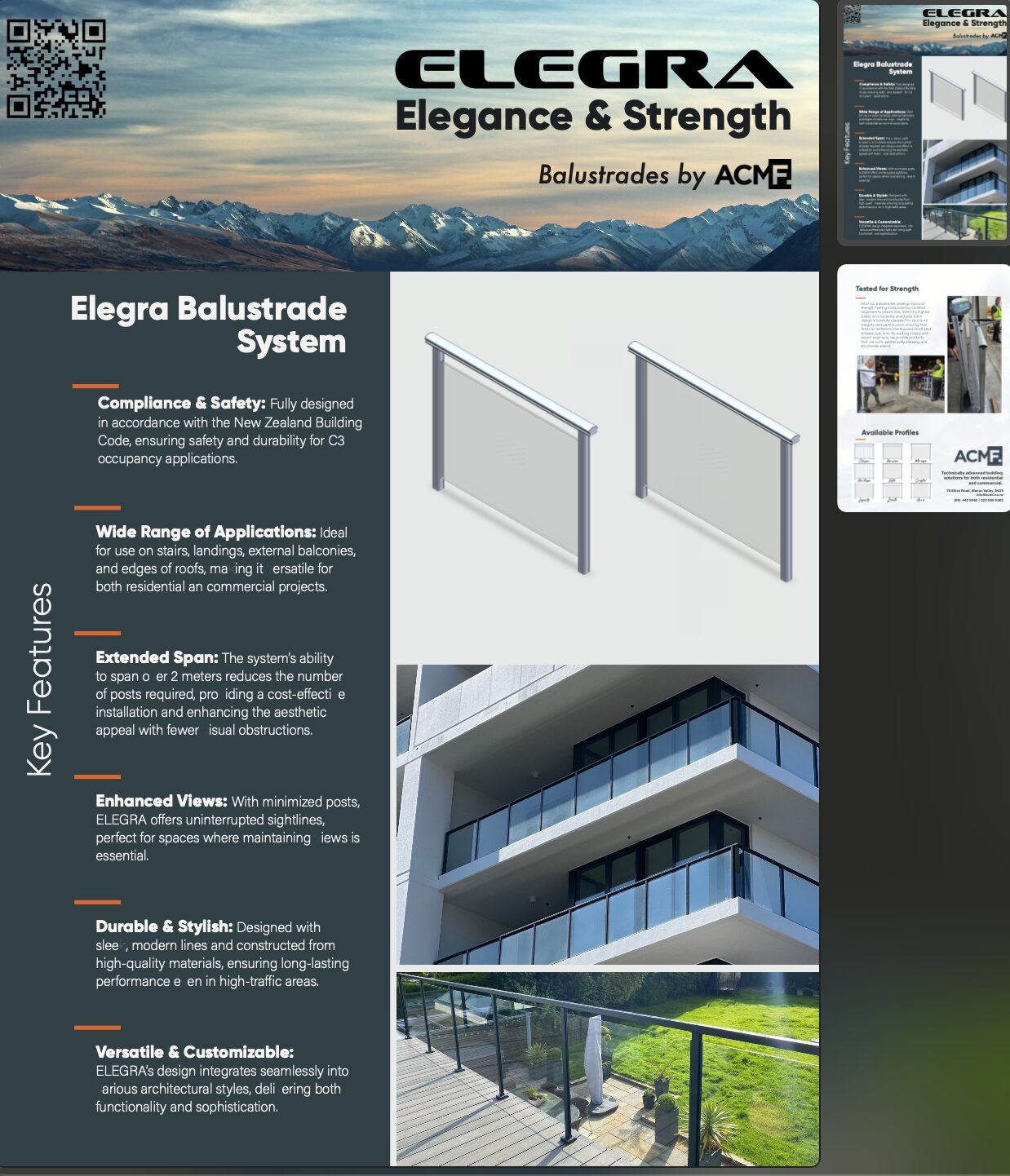 | Introducing the ELEGRA Balustrade System, ideal for a wide range of applications including use on stairs, landings, external balconies, and edges of roofs, making it versatile for both residential and commercial projects. This unique product is highly customisable and spans 50% longer than our competitors, significantly reducing installation costs. With minimised posts, ELEGRA offers uninterrupted sight lines, perfect for spaces where maintaining views is essential. | ||