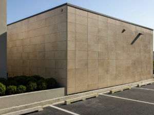 Frontek facade cladding panels are extruded ceramics in vitrified porcelain that have excellent technical attributes for the cladding of facades: extremely hard, light, highly resistant and long-lasting, with low water absorption and excellent performance against weather and the most demanding environmental conditions.